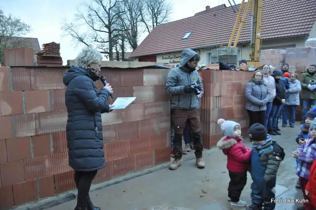 Pfarrer Gregor Arndt verwies auf die schwierige Zeit der Umorientierung für den Kindergarten. Aber er sagte auch, dass man sich nun mit der neuen Situation arrangieren müsse und alle froh sind, bald einen neuen Kindergarten zu haben. Er zog einen Vergleich zum Hl. Josef, der als gelernter Tischler sich auch sein Haus hat vorstellen können. Aber letztlich wurde Jesus in einer Krippe in einem Stall geboren. Aber die Krippe sei ein bedeutender Ort geworden. Man könne nicht alles umsetzen, was man sich wünsche, sagte der Pfarrer.Der Hl. Josef ist der Patronat des Kallmeröder Kindergarten. Pfarrer Arndt segnete den Bau und die daran Beteiligten, dass alles gut gelingen möge. Er dankte auch der ehemaligen Leiterin des Kindergartens, Elisabeth Hunold, für ihr jahrelanges Engagement.
