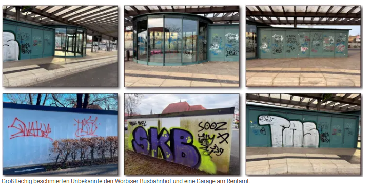 - Busbahnhof Worbis: Am Dienstagmorgen entdeckten Mitarbeiter des Ordnungsamtes weitere Schäden am ZOB. Auch hier beschmierten Unbekannte mehrere Wände großflächig.