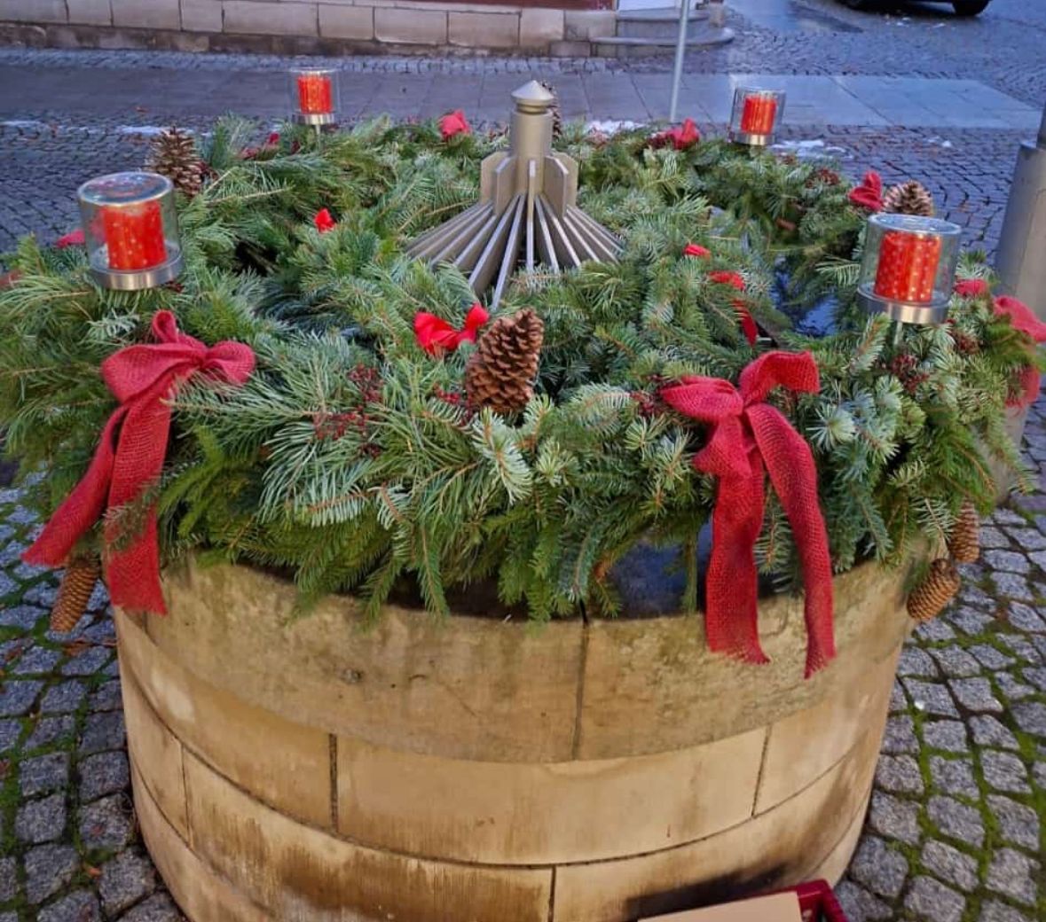 Jedes Jahr zum Advent und zu Ostern schmücken die Landfrauen den Brunnen in der Langen Straße in Worbis entsprechend Festlich. In der Vorweihnachtszeit ist es natürlich ein großer Adventskranz, der die Vorübergehenden erfreut.