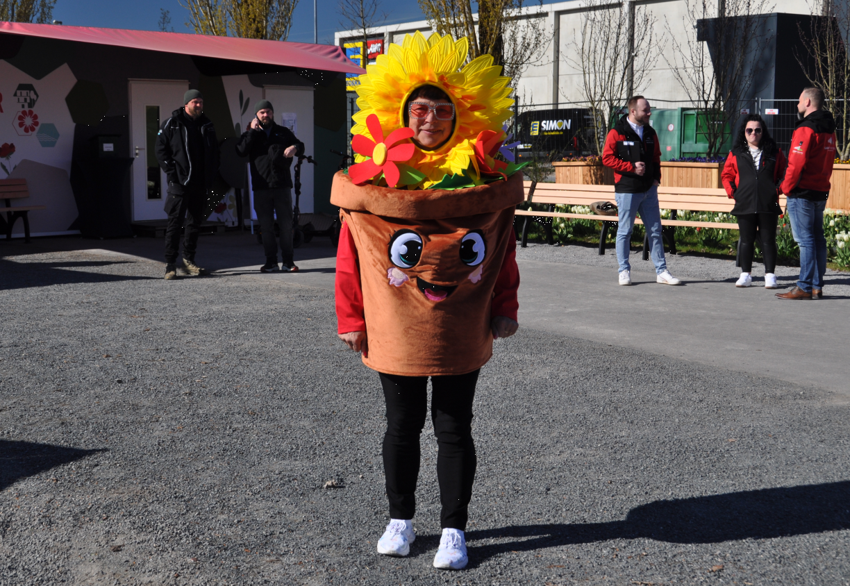 Verbreitete den ganzen Tag gute Laune und wurde mit vielen Bescuhern auch fotografiert: das Maskottchen der Landesgartenschau (hier Simone Henning). Foto: Ilka Kühn