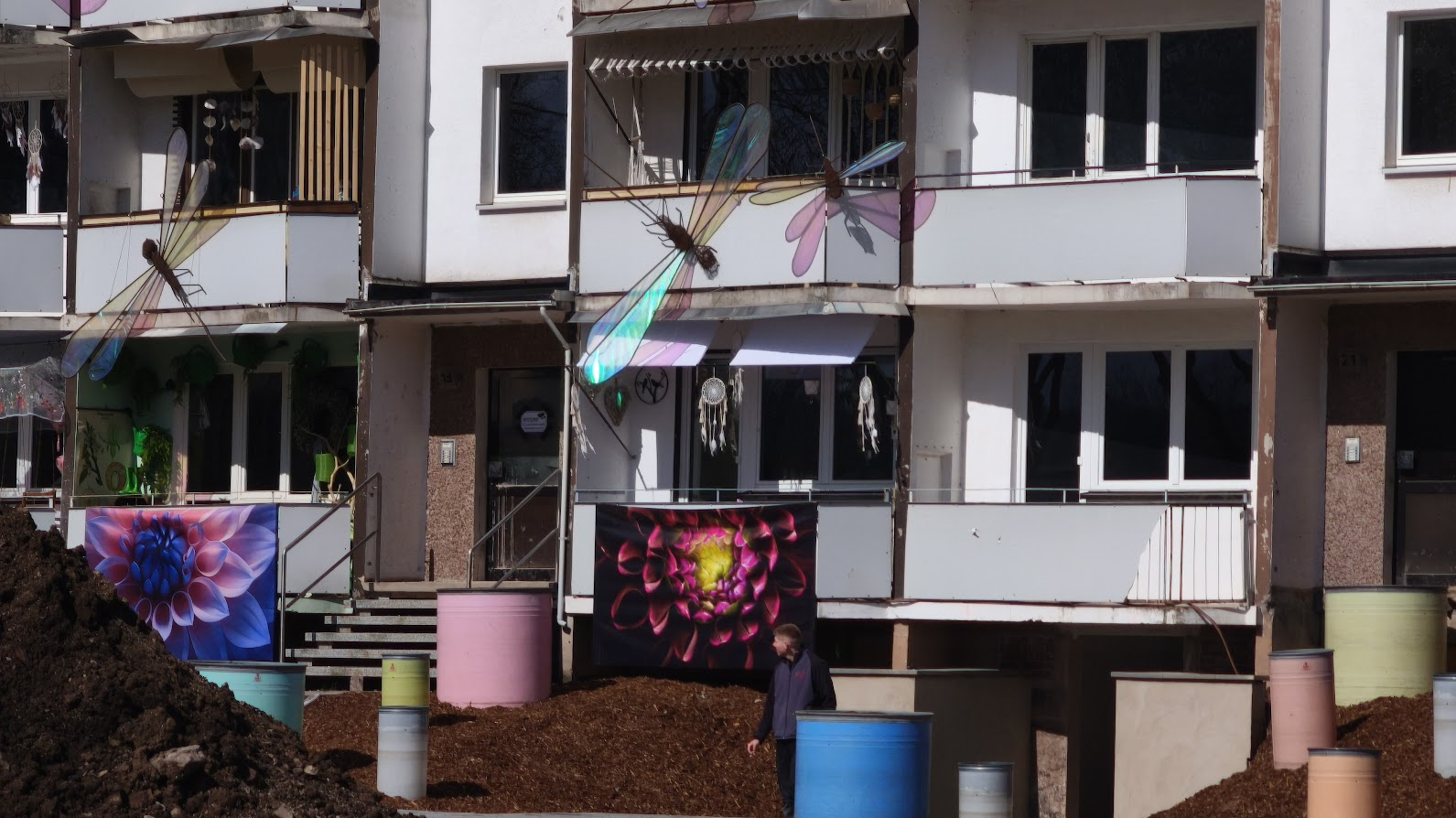 Presseinfo der Stadtverwaltung: Rund geht es aber im sogenannten „Blumenblock“, einem leergezogenen Plattenbau der Leinefelder Wohnungsbaugenossenschaft eG (LWG), der für sechs Monate spannende Ausstellungen beherbergen wird.