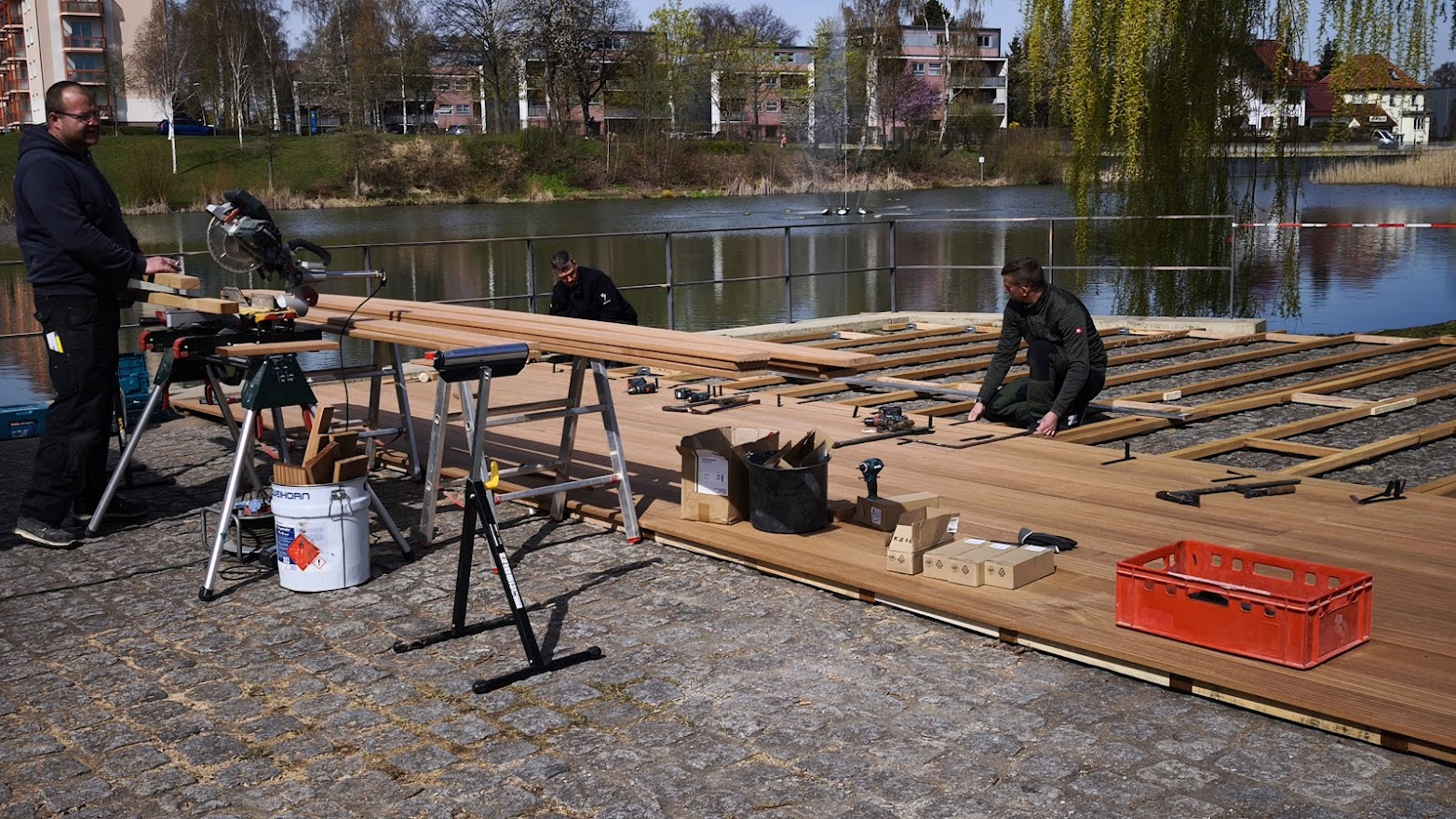 Hier entsteht eine Terrasse für das Eiscafé am Teich. Foto: Ilka Kühn