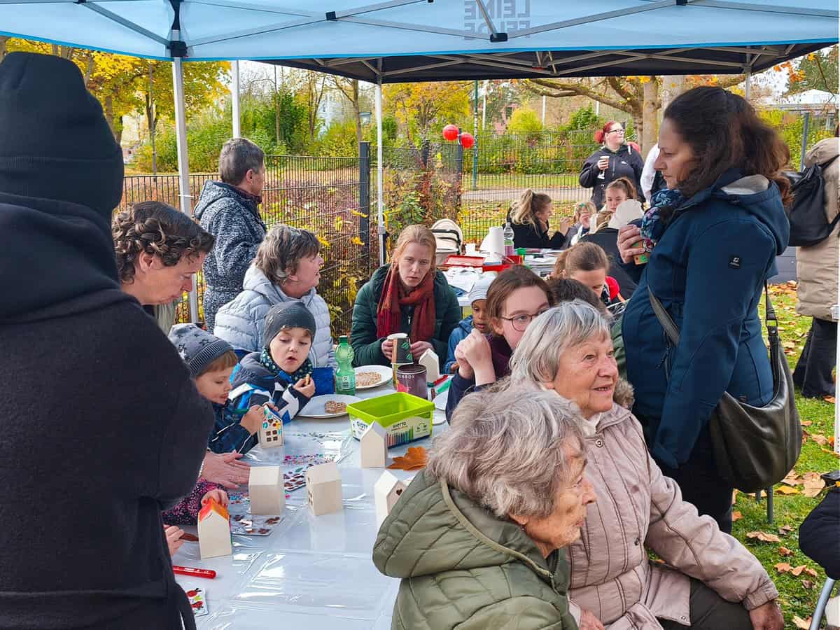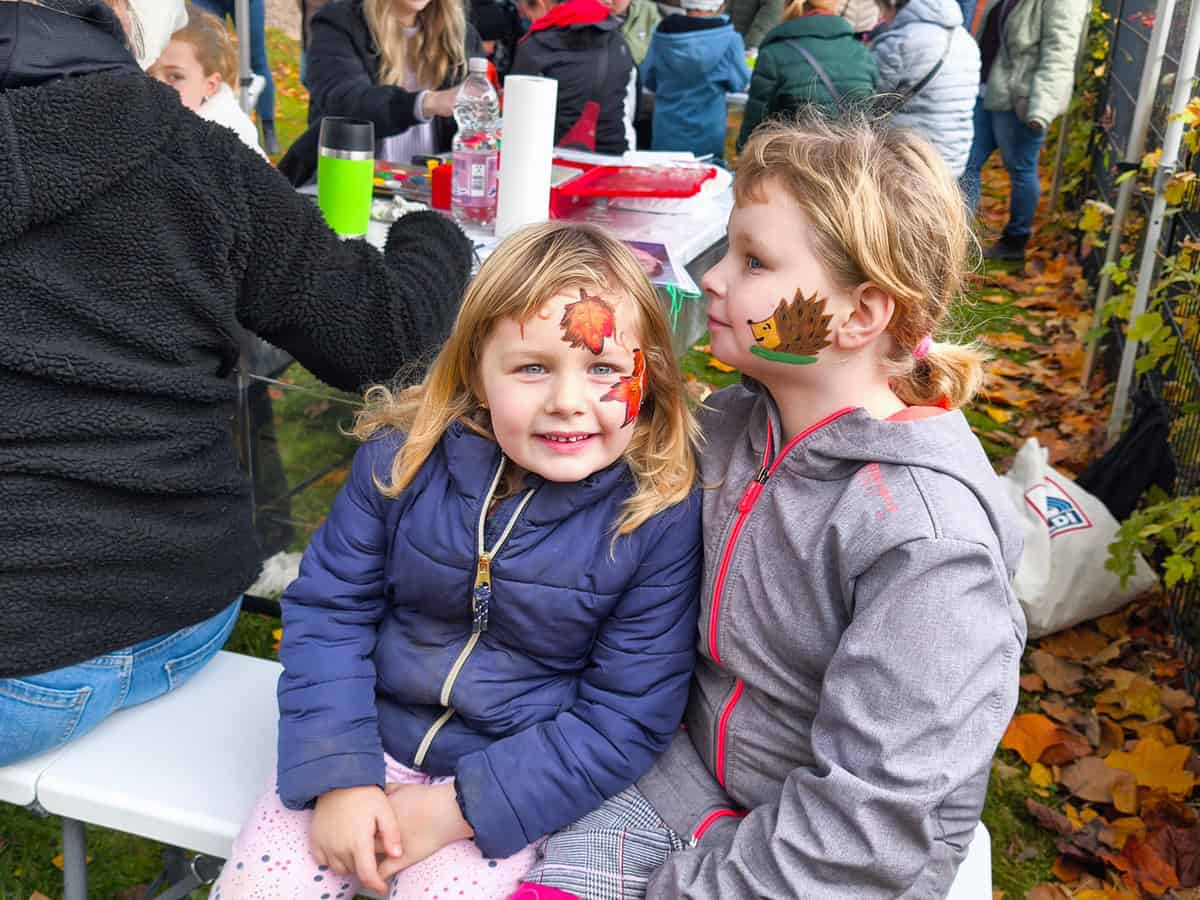 Zum Start des Gemeinschaftsgartens kamen zahlreiche Besucher, es gab Waffeln, Kaffee, Glühwein und anderes. Die Mädchen und Jungen konnten sich schminken lassen – passend zum Thema zeigten viele stolz kleine ihre kleinen Herbstmotive.