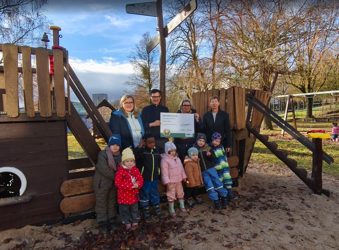 Dazu zählt auch der Evangelische Kindergarten „Gockelhahn“. Bei wunderschönem Herbstwetter trafen SWL-Geschäftsführer Thomas Gerstner und Prokurist Rüdiger Steinberg die Kinder und Betreuer in dem herrlichen Gelände am Kindergarten und konnten sich davon überzeugen, dass die Mädchen und Jungen sehr viel Freude dort haben. Leiterin Cindy Jerchel und Pfarrerin Dorothea Heizmann begrüßten die Gäste herzlich und dankten ihnen für die finanzielle Unterstützung. In den vergangenen Jahren ist eine SWL-Unterstützung bereits in ein sehr großes Spielgerät geflossen.
