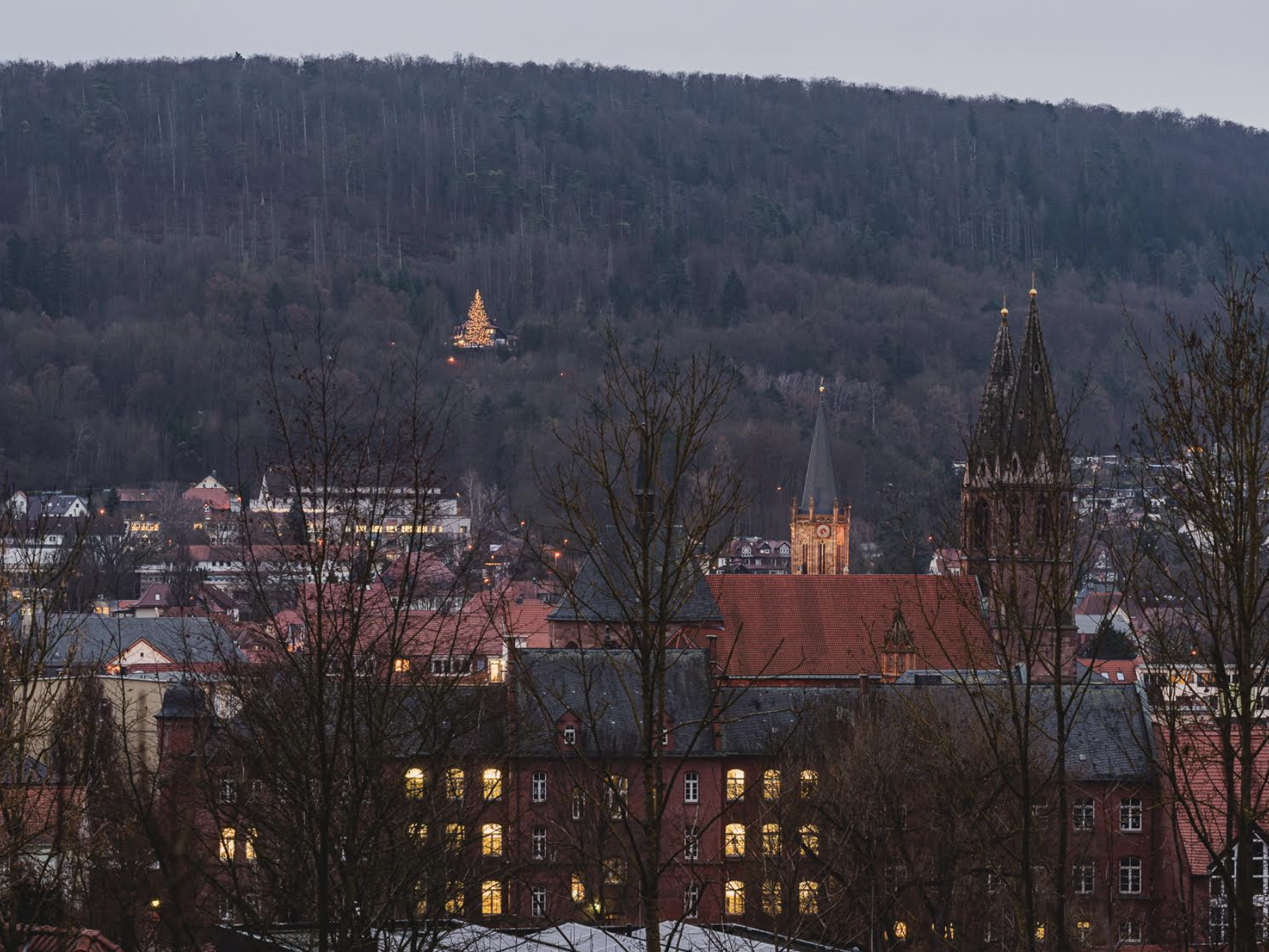 Heilbad Heiligenstadt. Der beleuchtete Weihnachtsbaum auf dem Iberg ist jedem Heiligenstädter bekannt und fällt auch vielen Gästen, die die Stadt in der Adventszeit besuchen, ins Auge. Hoch über der Stadt gelegen, prägt er seit Jahren das winterliche Stadtbild und ist weithin sichtbar. Die Fichte wurde in den 1990er-Jahren am Hang vor dem Iberghaus gepflanzt.