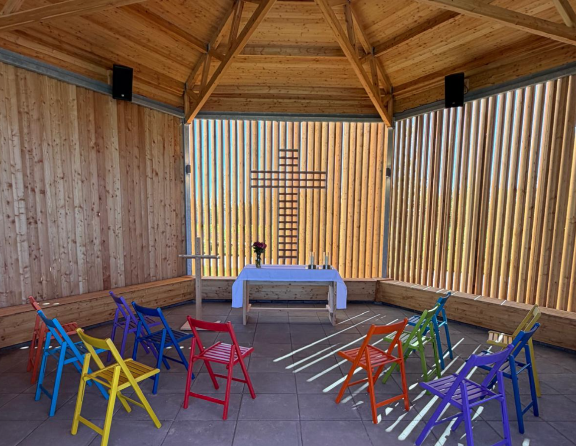 Musikalisch begleitet wird der Gottesdienst von der Band „Heaven‘s Gate“. Im Anschluss an den Gottesdienst wird der Kirchenpavillon gesegnet. Er soll während der Landesgartenschau ein Ort der Begegnung, der Ruhe und des Nachdenkens sein.